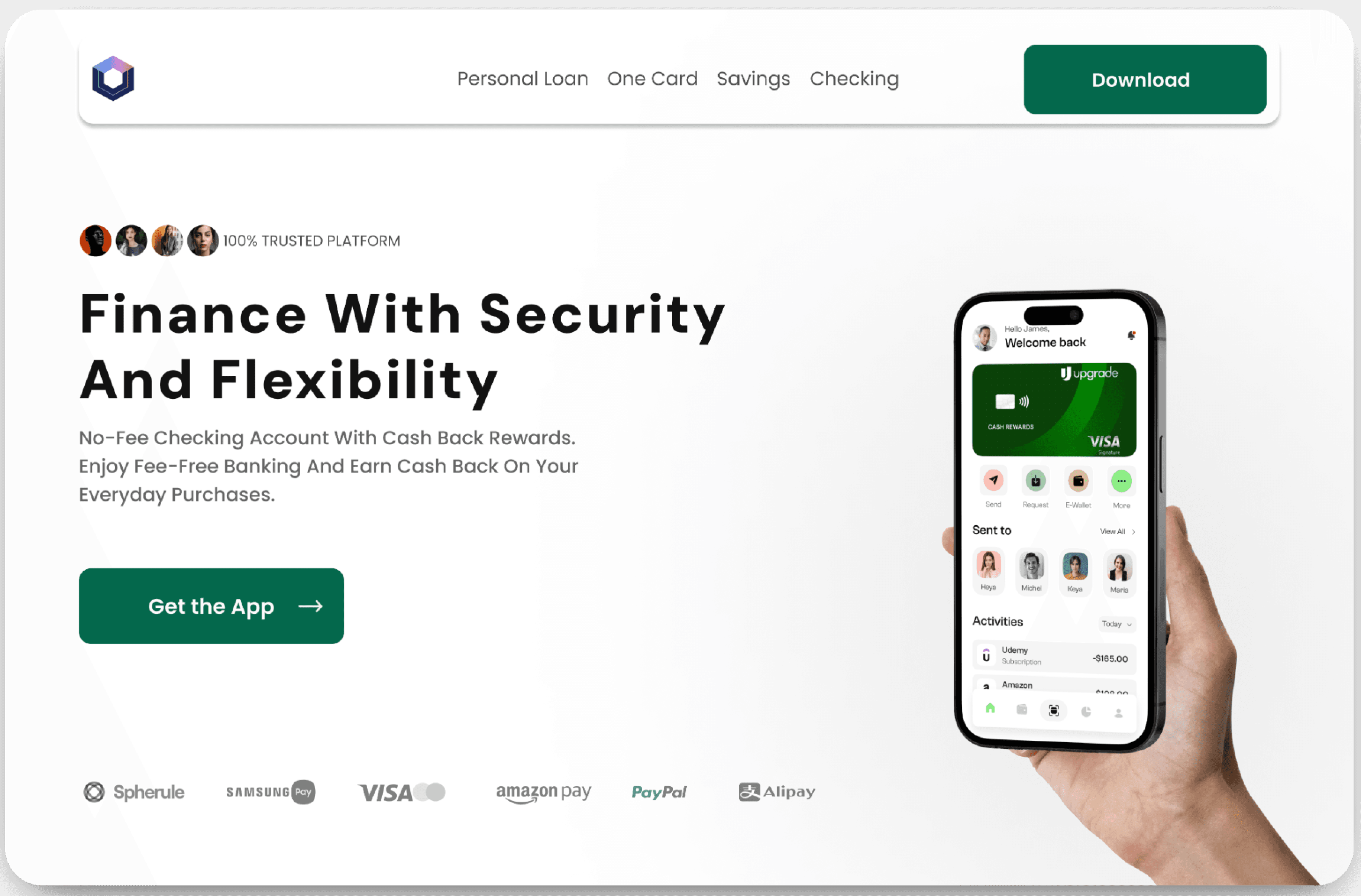 Fintech landing page designed to boost trust and drive sign-ups with clean visuals and microinteractions.